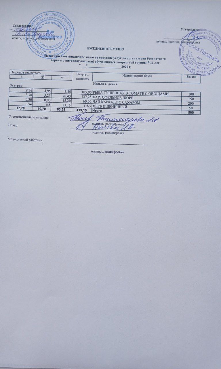 Меню на 04.03.2026г