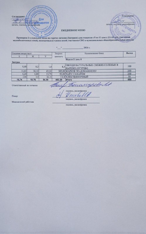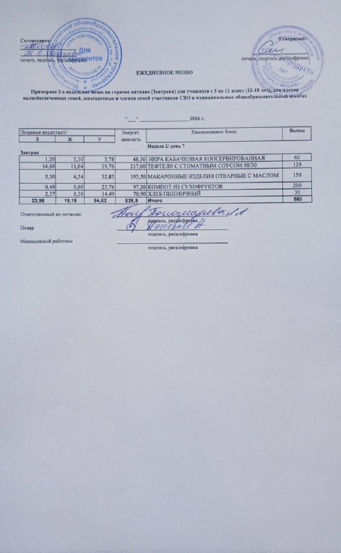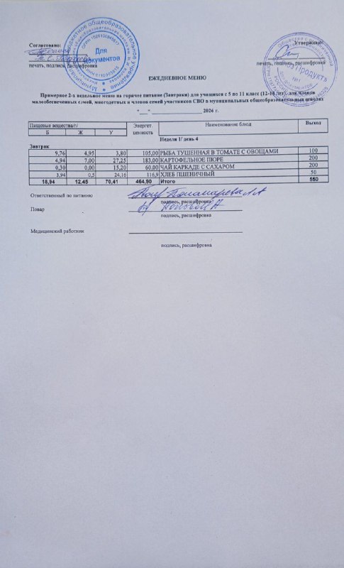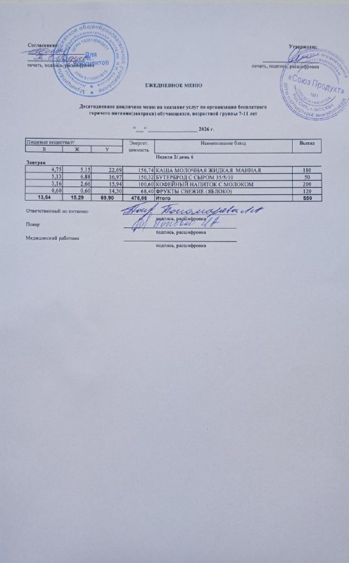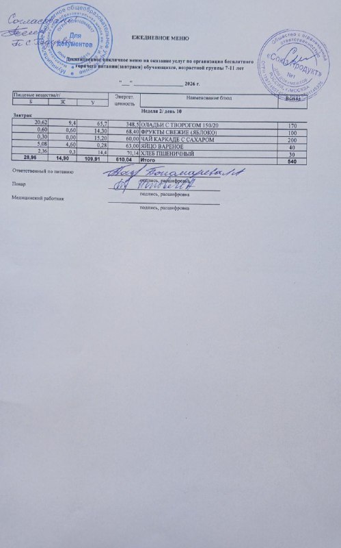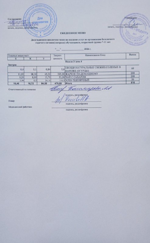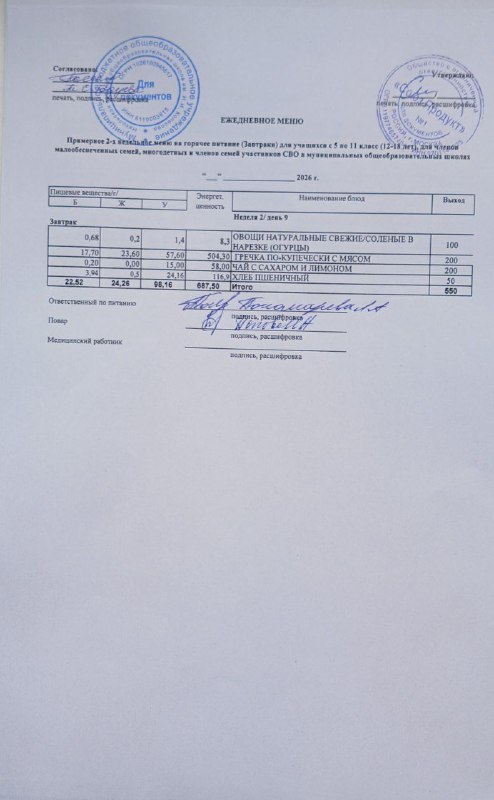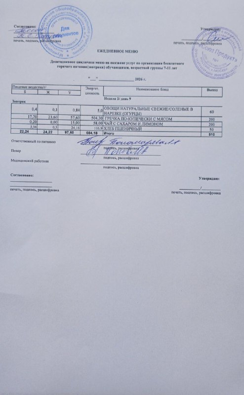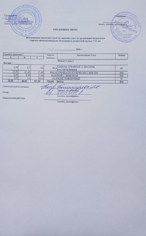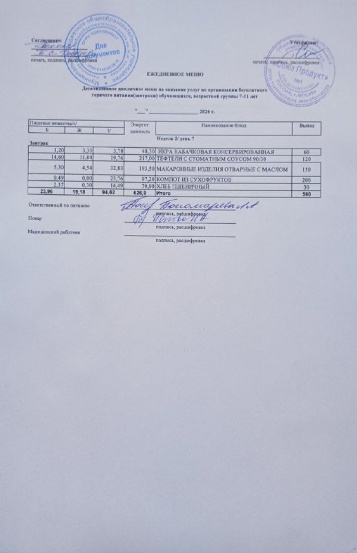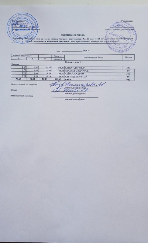 Меню на 11.03.2026г