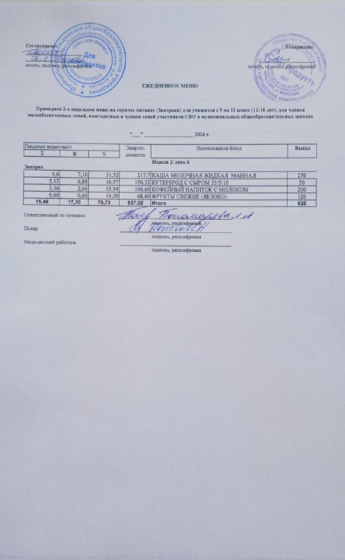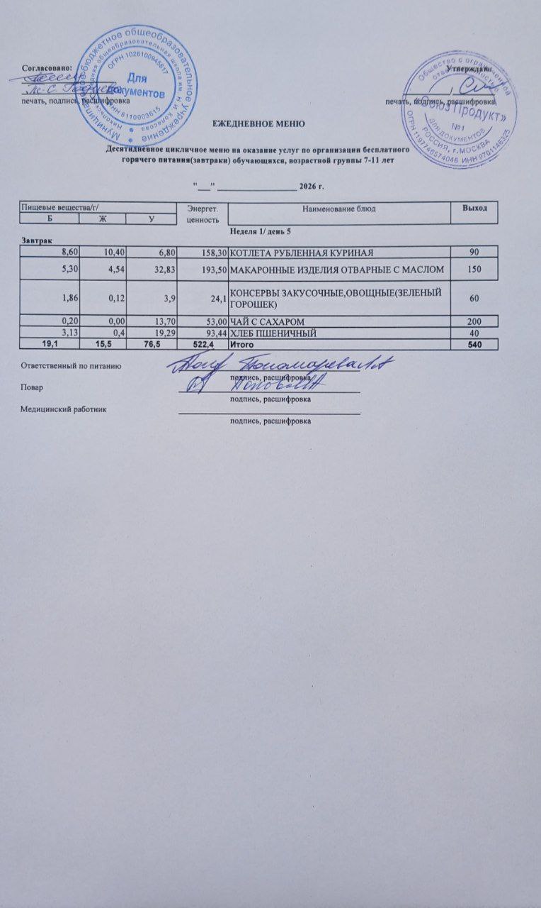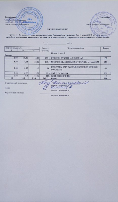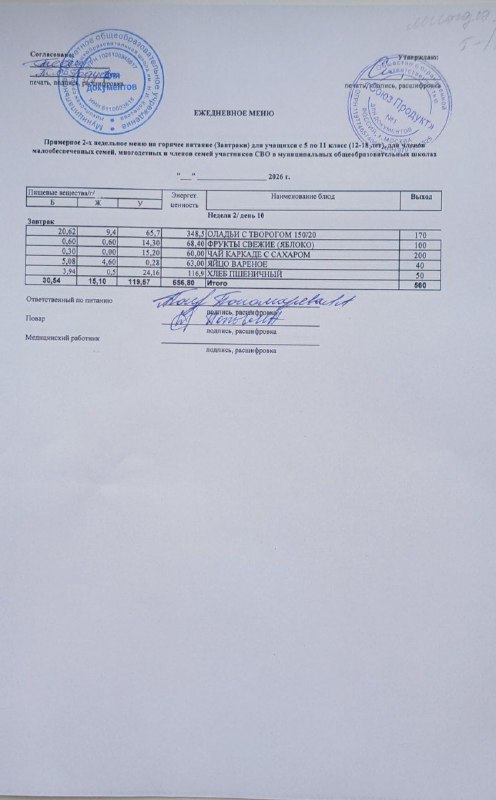 Меню на 05.03.2026г